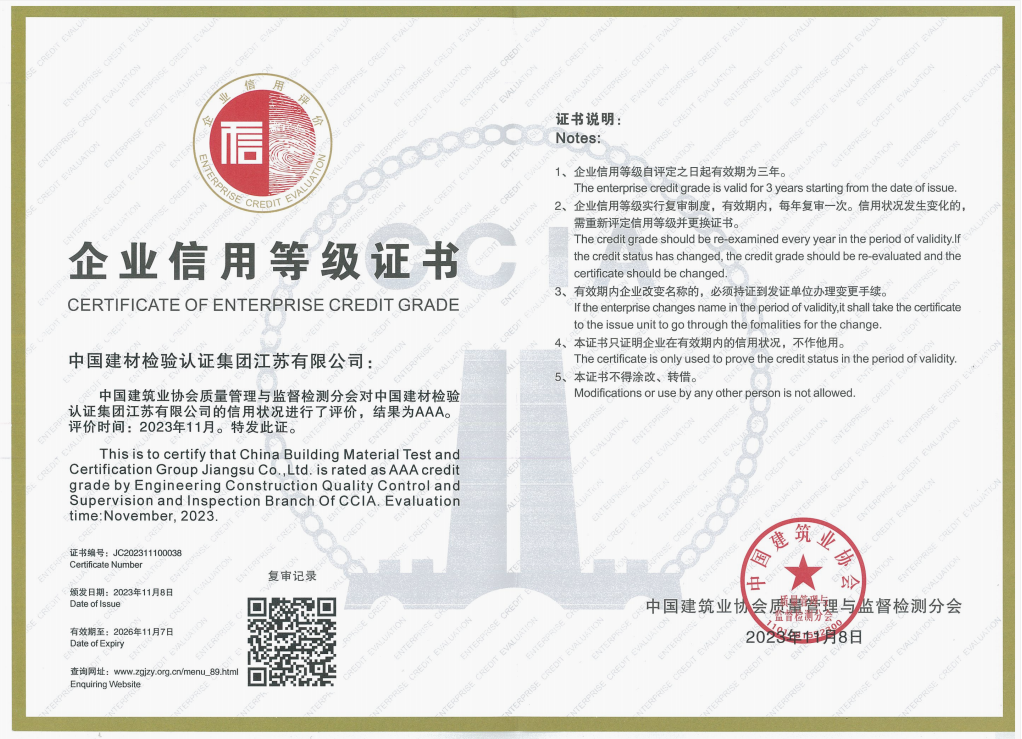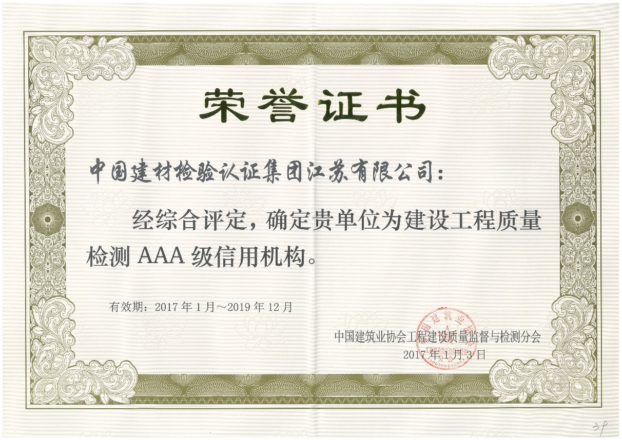 • 建設(shè)工程質(zhì)量檢測(cè)AAA級(jí)信用機(jī)構(gòu)
