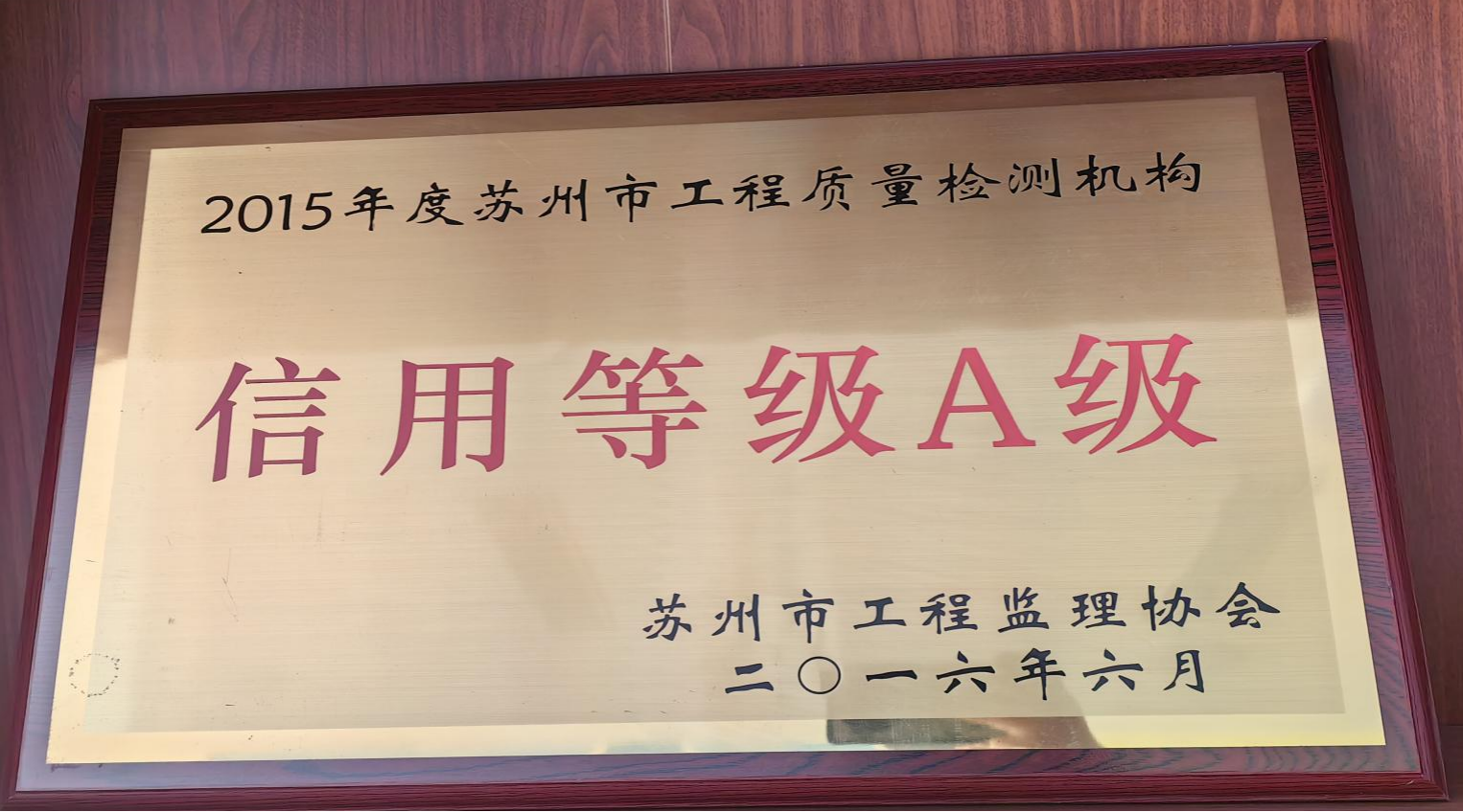 • 2015年度蘇州市工程質(zhì)量檢測(cè)機(jī)構(gòu)信用等級(jí)A級(jí)