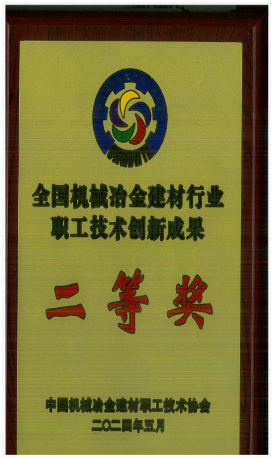 • 2022年國(guó)機(jī)械冶金建材行業(yè)職工技術(shù)創(chuàng)新成果“二等獎(jiǎng)”