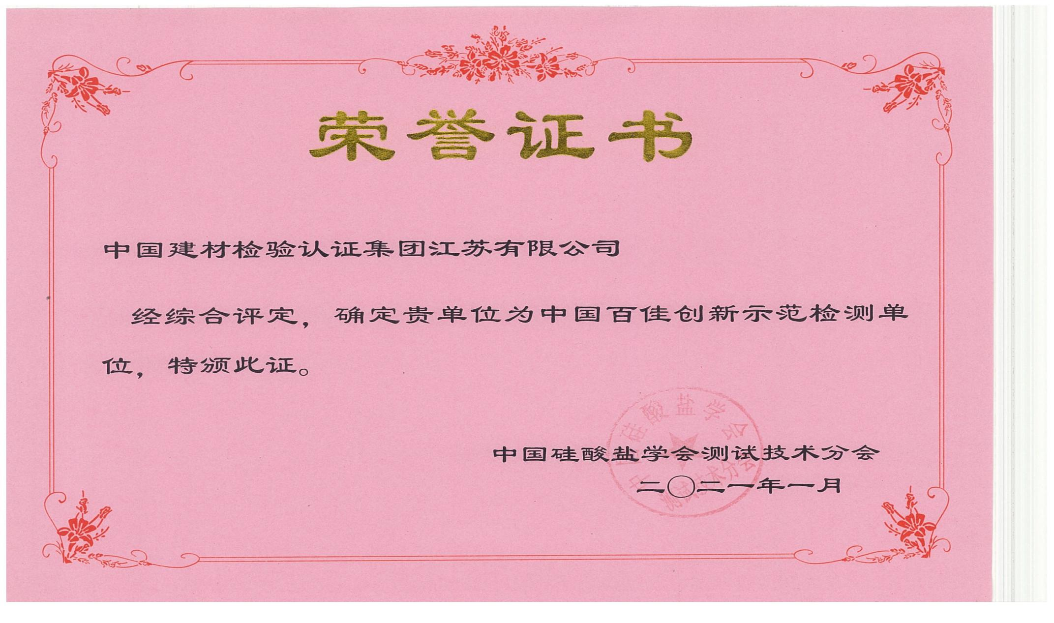 • 2021年中國(guó)百佳創(chuàng)新示范檢測(cè)單位