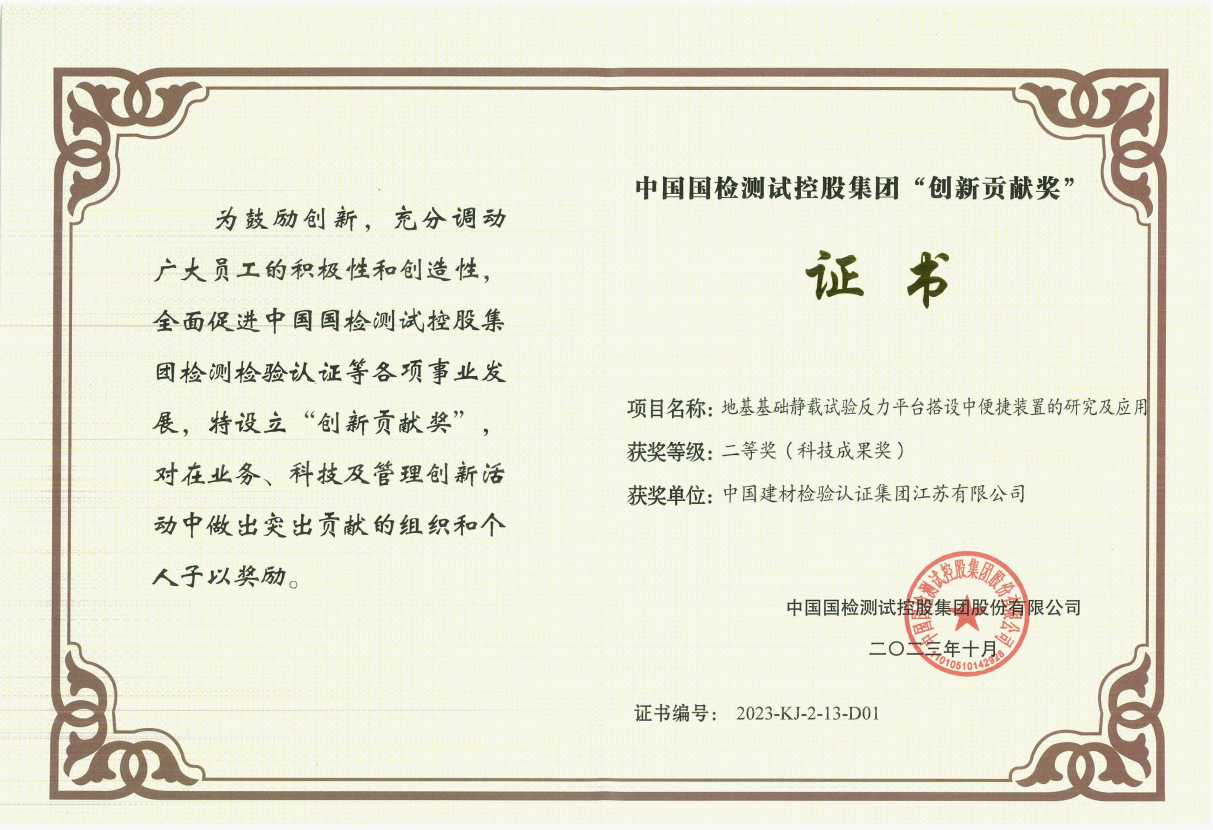 • 2023年中國(guó)國(guó)檢測(cè)試控股集團(tuán)“創(chuàng)新貢獻(xiàn)獎(jiǎng)”二等獎(jiǎng)