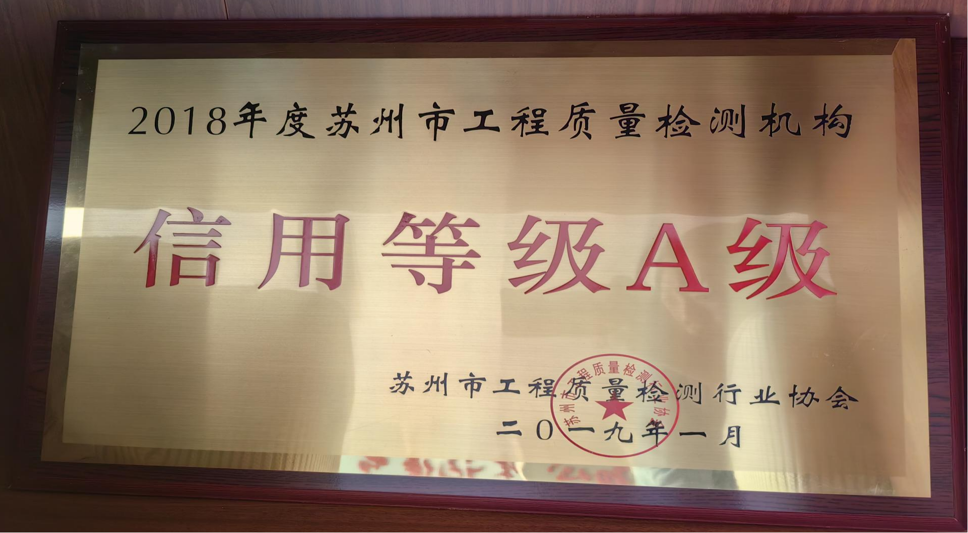 • 2018年度蘇州市工程質(zhì)量檢測(cè)機(jī)構(gòu)信用等級(jí)A級(jí)