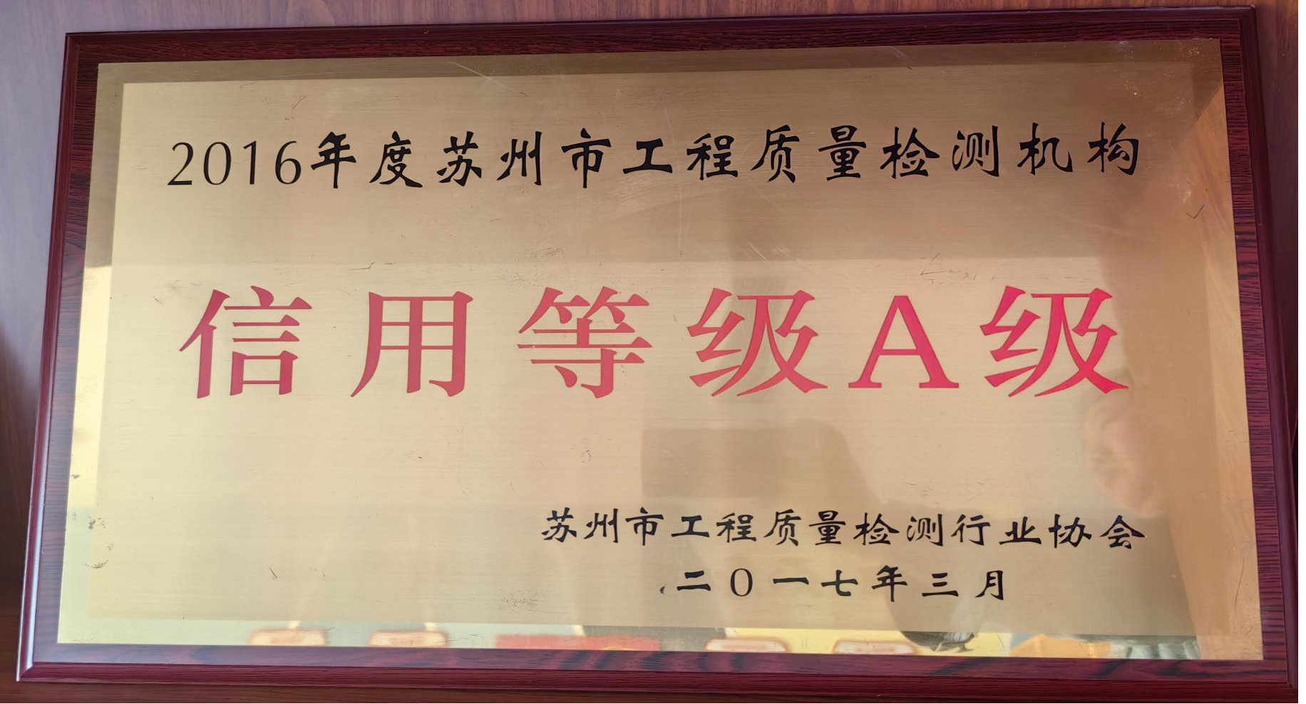 • 2016年度蘇州市工程質(zhì)量檢測(cè)機(jī)構(gòu)信用等級(jí)A級(jí)