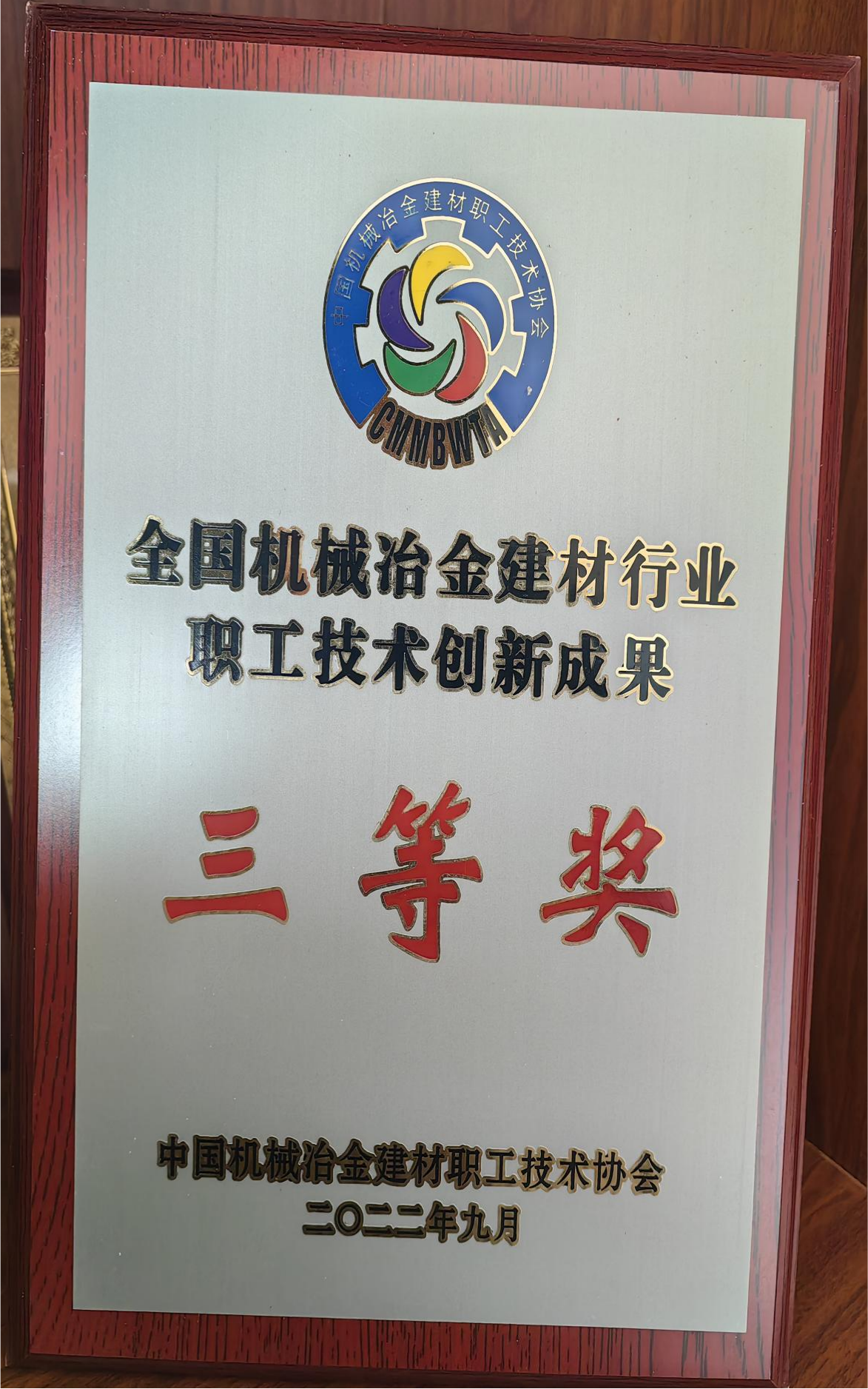 • 2022年全國(guó)機(jī)械冶金建材行業(yè)職工技術(shù)創(chuàng)新成果“三等獎(jiǎng)”