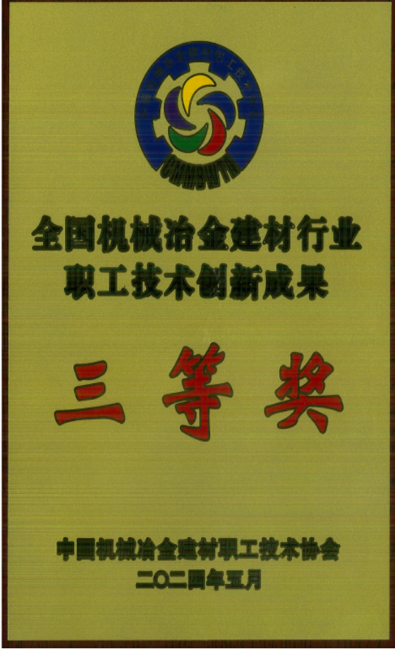 • 2024年全國(guó)機(jī)械冶金建材行業(yè)職工技術(shù)創(chuàng)新成果“三等獎(jiǎng)”