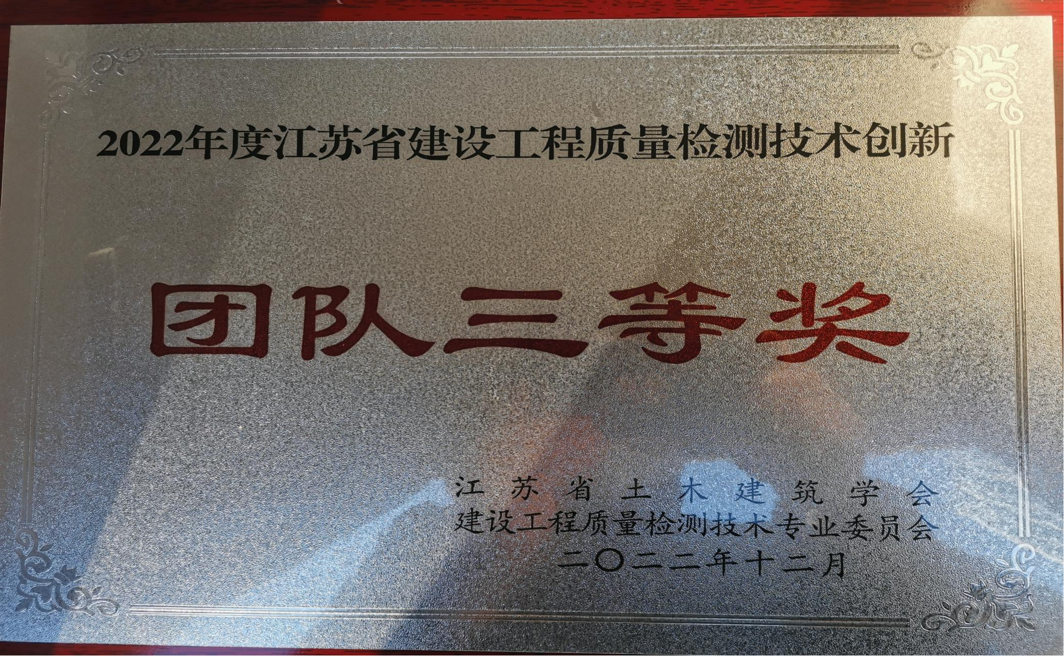 • 2022年度江蘇省建設(shè)工程質(zhì)量檢測(cè)技術(shù)創(chuàng)新——團(tuán)隊(duì)三等獎(jiǎng)