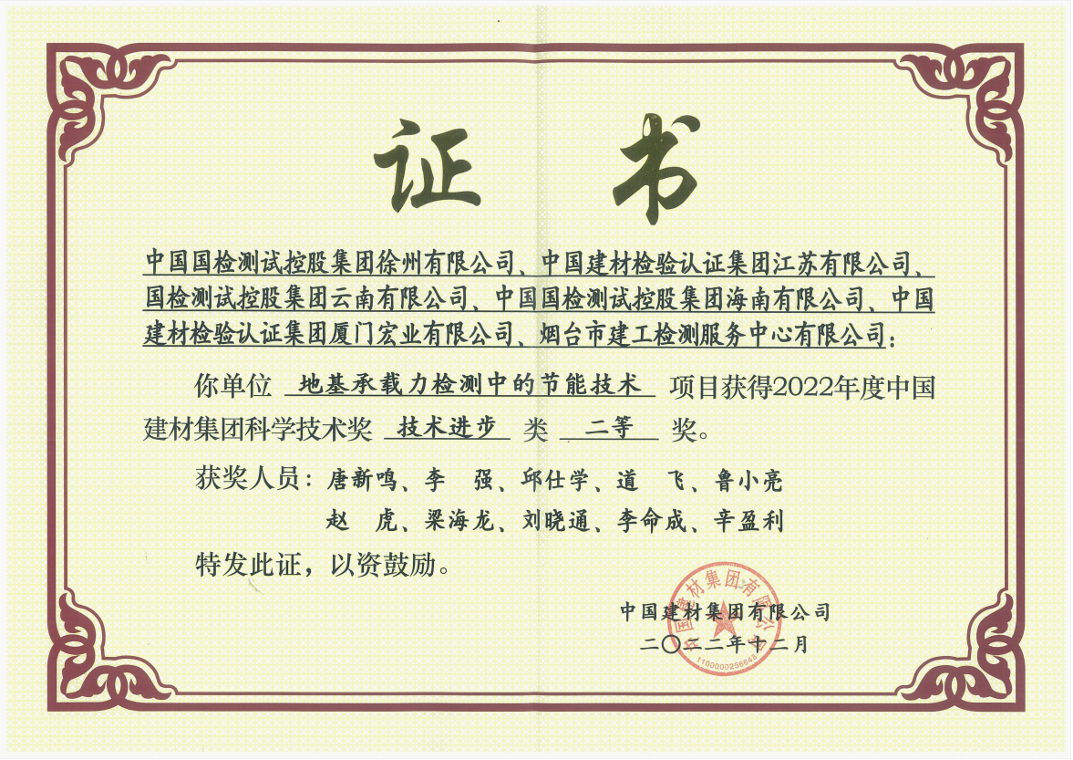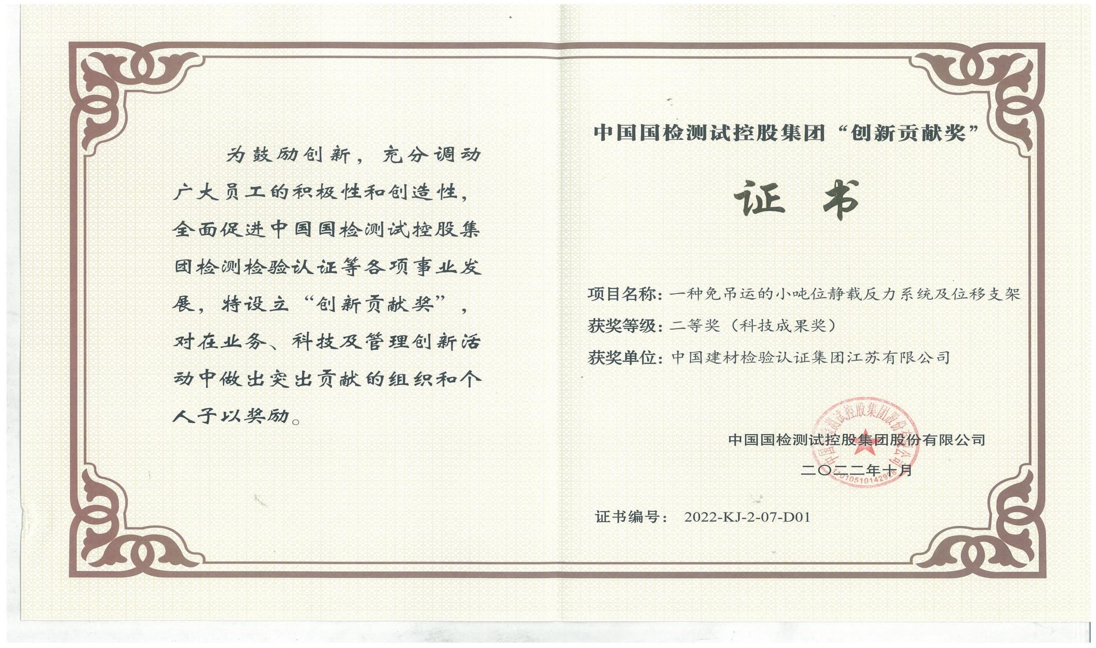 • 2022年中國(guó)國(guó)檢測(cè)試控股集團(tuán)“創(chuàng)新貢獻(xiàn)”二等獎(jiǎng)