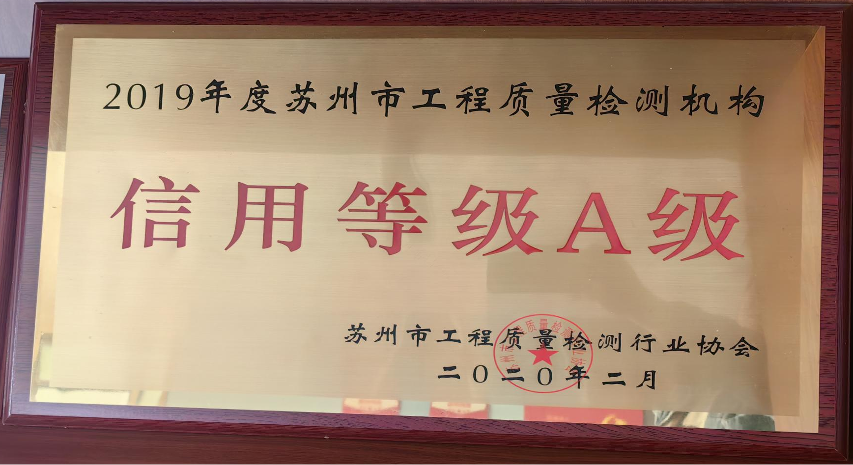 • 2019年度蘇州市工程質(zhì)量檢測(cè)機(jī)構(gòu)信用等級(jí)A級(jí)