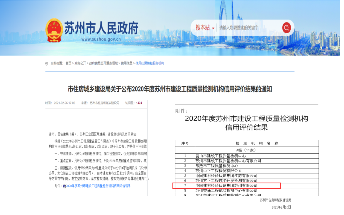• 2021年度蘇州市質(zhì)量檢測(cè)機(jī)構(gòu)信用評(píng)價(jià)A級(jí)