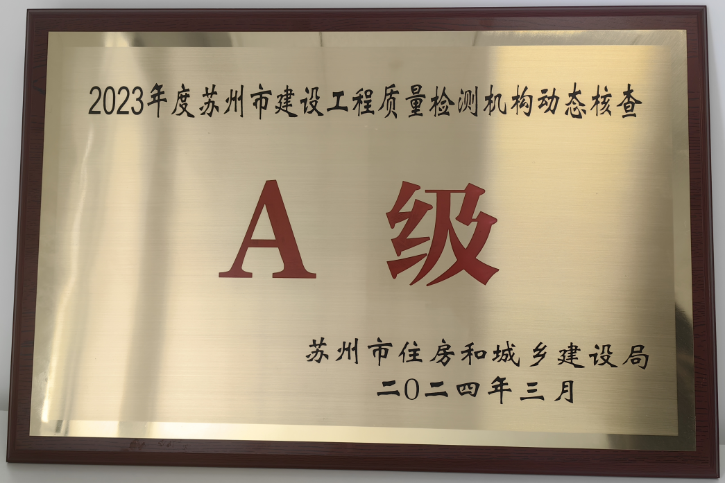 • 2023年度蘇州市建設(shè)工程質(zhì)量檢測(cè)機(jī)構(gòu)動(dòng)態(tài)核查A級(jí)