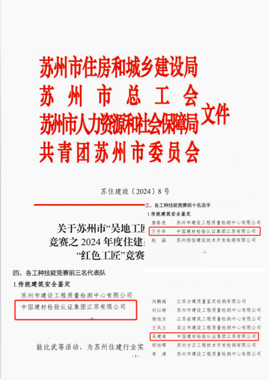 • 蘇州市2024年度住建系統(tǒng)一線(xiàn)崗位職工“紅色工匠”競(jìng)賽表彰(個(gè)人、集體)