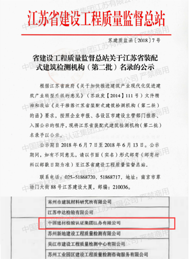 • 入圍江蘇省裝配式建筑檢測(cè)名錄