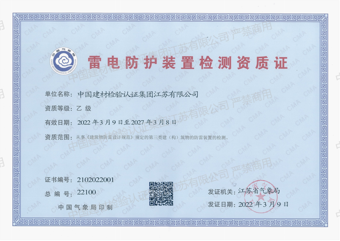 • 雷電防護(hù)裝置檢測(cè)資質(zhì)證