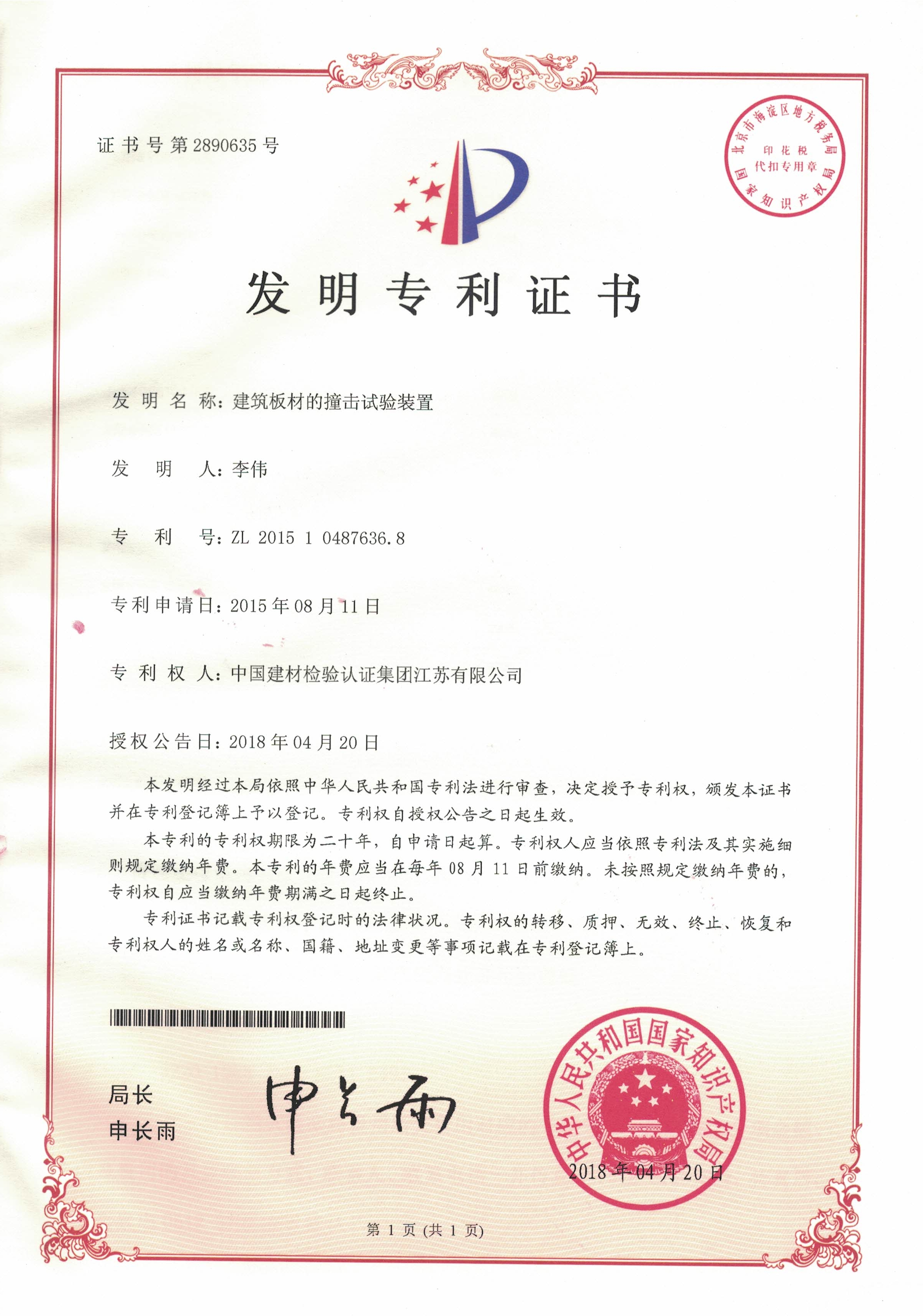 專利名稱:建筑板材的撞擊試驗裝置 專利權(quán)人:中國建材檢驗認(rèn)證集團江蘇有限公司 時間:2018-04-20
