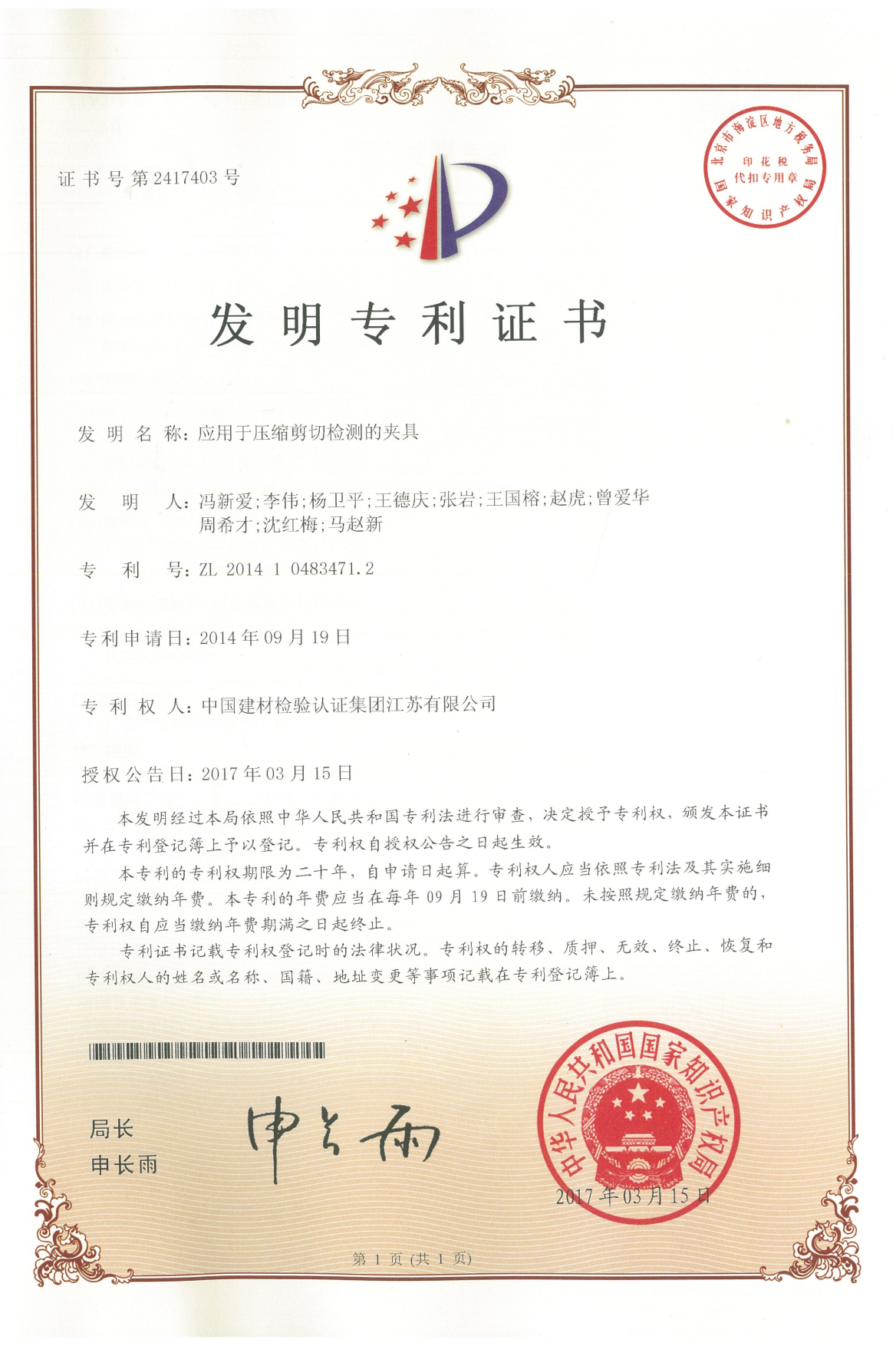 專利名稱:應(yīng)用于壓縮剪切試驗的夾具 專利權(quán)人:中國建材檢驗認(rèn)證集團江蘇有限公司 時間:2017-03-15